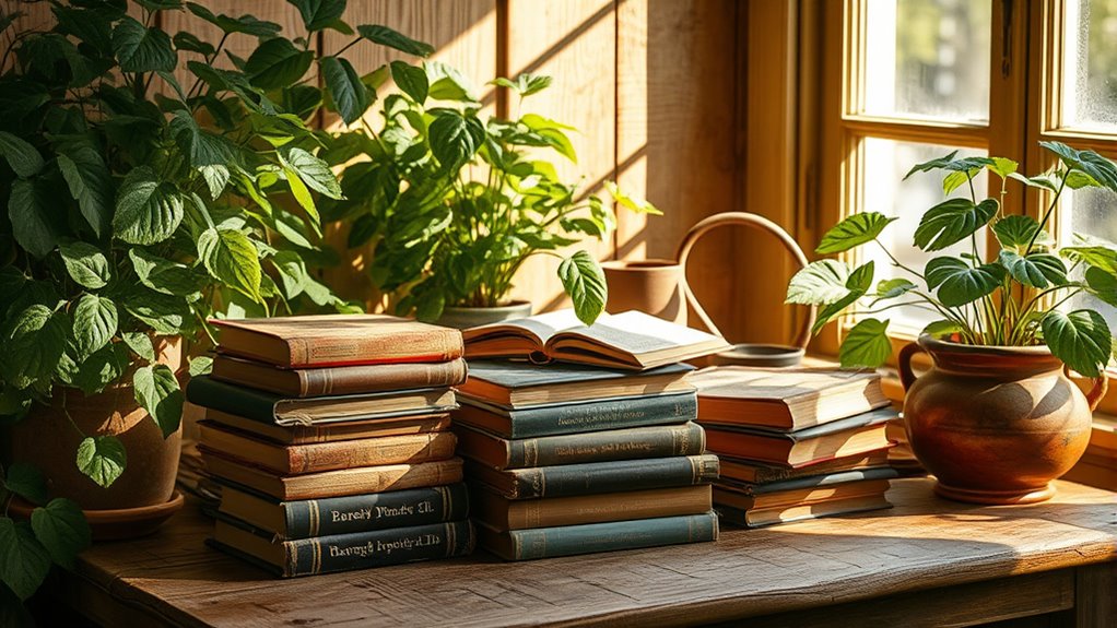 If you’re looking for practical gardening advice for beginners, start with books that cover composting basics and garden planning tips. These resources walk you through creating rich compost and designing your garden layout effectively. You’ll learn how to choose the right plants, prepare soil, and maintain your garden. By applying these tips, you’ll grow healthier plants and enjoy a more rewarding gardening experience right from the start.