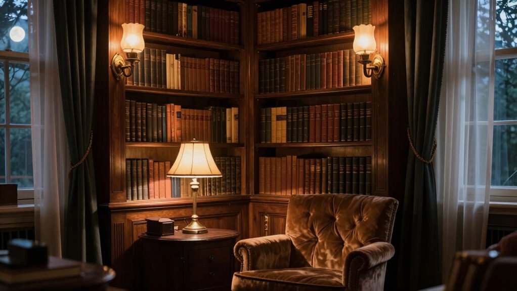 These techniques enhance your space’s visual appeal while keeping the focus on your treasured books and artwork. Proper lighting not only highlights but also elevates the overall ambiance of your home library.