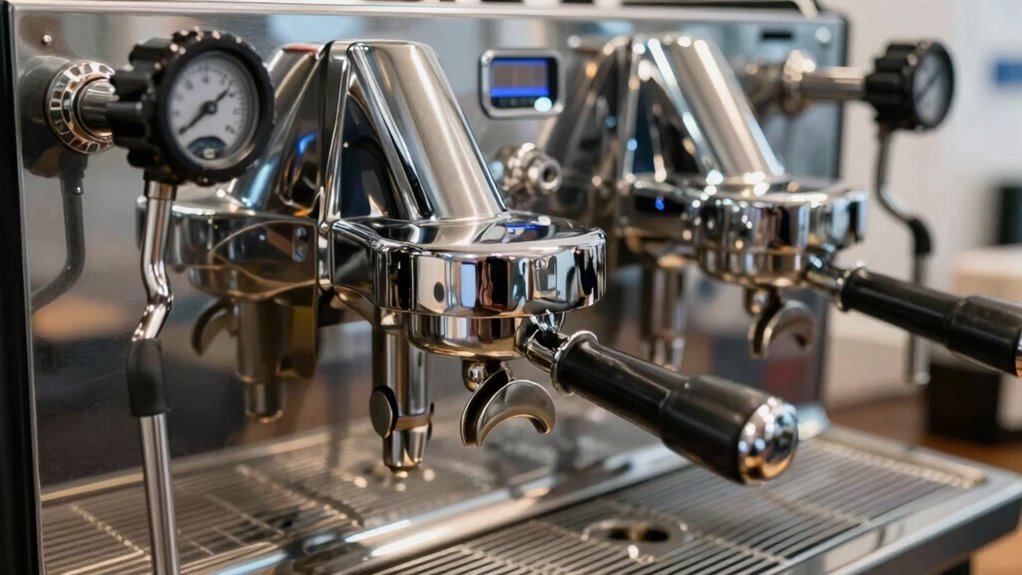 Sure, instead of obsessing over pressure bars, look for a machine that offers pressure stability and brewing consistency. Ironically, these factors matter more than the flashy numbers on the machine’s gauge. You want something that maintains steady pressure and delivers a reliable shot every time, ensuring your espresso’s flavor is consistent and rich. Focus on build quality and user reviews—those are better indicators of a good espresso machine than marketing hype.