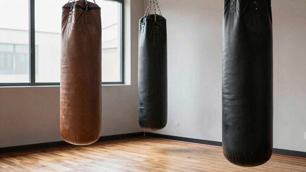 Choosing between hanging and freestanding heavy bags is like walking a tightrope—you want safety without sacrificing your floor’s integrity. Both options can be safe if you take proper precautions, but understanding how they interact with your flooring helps you make smarter choices. With the right protection and mindful use, you can keep your floors intact while smashing your fitness goals. Remember, a well-placed heavy bag is your partner in strength, not your floor’s downfall.