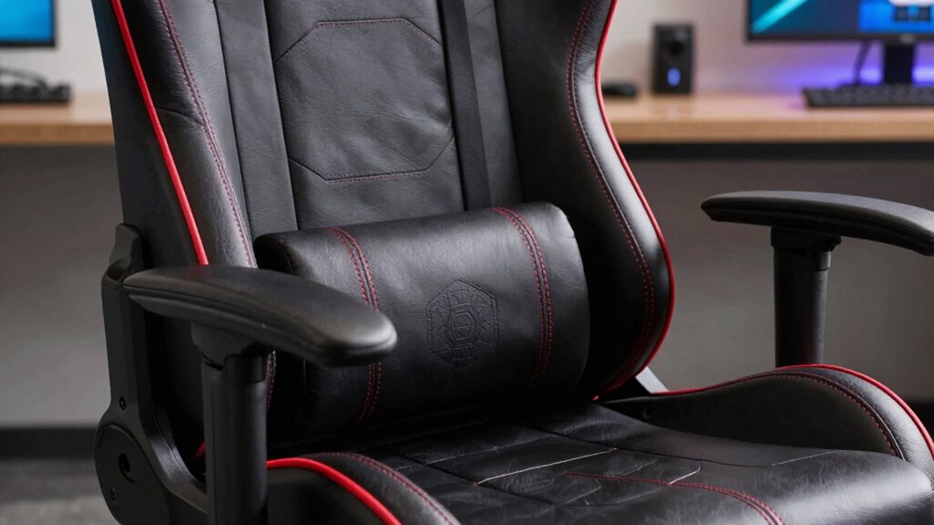 Perfectly personalized posture is possible with the right accessories. You should prioritize ergonomic adjustments like adjustable armrests and seat height, ensuring comfort and support. Lumbar support customization is essential—consider adding a lumbar pillow or cushion to cradle your lower back. These accessories help you fine-tune your fit, fostering better posture and reducing fatigue, so you can game longer and feel more comfortable throughout your gaming sessions.