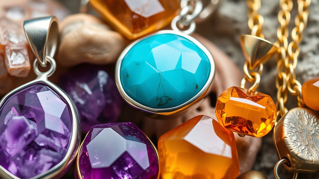 Yes, natural stones are believed to have unique healing properties. You might notice that many people feel their healing energies help balance emotions or promote relaxation. These stones are thought to carry metaphysical properties that can enhance your well-being. While scientific proof is limited, trusting in their healing energies can add a meaningful, spiritual dimension to your jewelry collection and daily practices.
