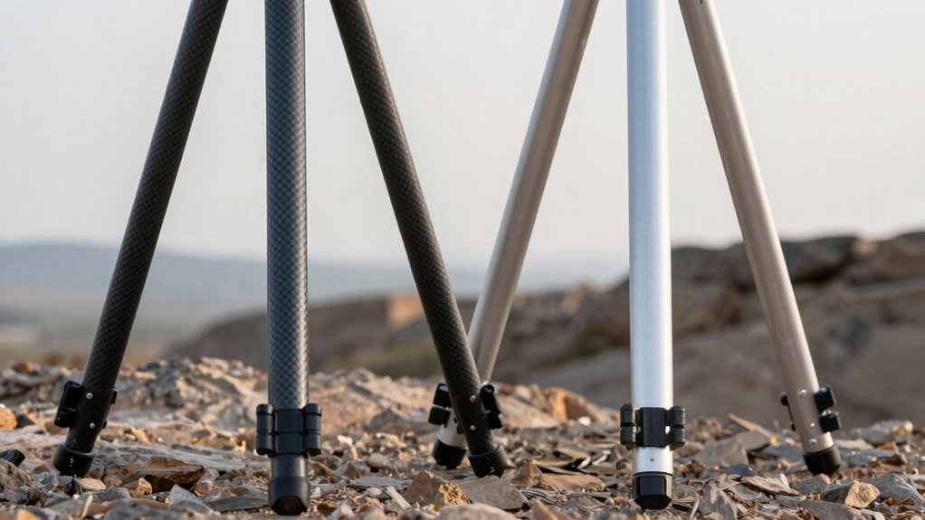 Choosing between carbon fiber and aluminum depends on your needs. Carbon fiber offers lightweight strength and excellent vibration dampening, making it durable for tough conditions. Aluminum, while heavier, is resilient and more budget-friendly. Both materials have their merits, but understanding how they handle stress and wear helps you pick the right one. Durability isn’t just about material—it’s about how you care for your tripod. Invest wisely, and your gear will serve you well, rain or shine.