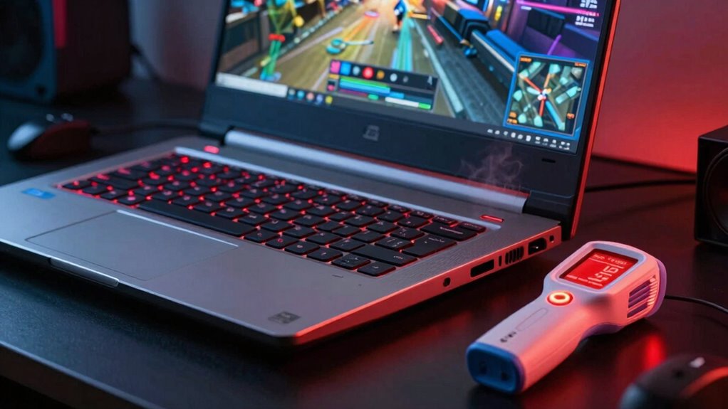 By paying close attention to thermal design and testing before you buy, you can avoid gaming laptops that run hotter than a summer heatwave. Think of your laptop’s cooling system as its heartbeat—keeping everything running smoothly. Don’t let overheating sneak up on you like a thief in the night; instead, choose wisely, ensuring your gaming adventures stay cool, quiet, and unstoppable. A well-chilled laptop is your best ally in the game of performance.