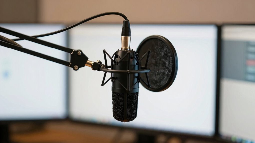 Positioning your microphone correctly is essential for achieving a clear, professional sound. Proper placement helps minimize background noise and optimizes room acoustics. To guarantee clarity, consider these top positions: