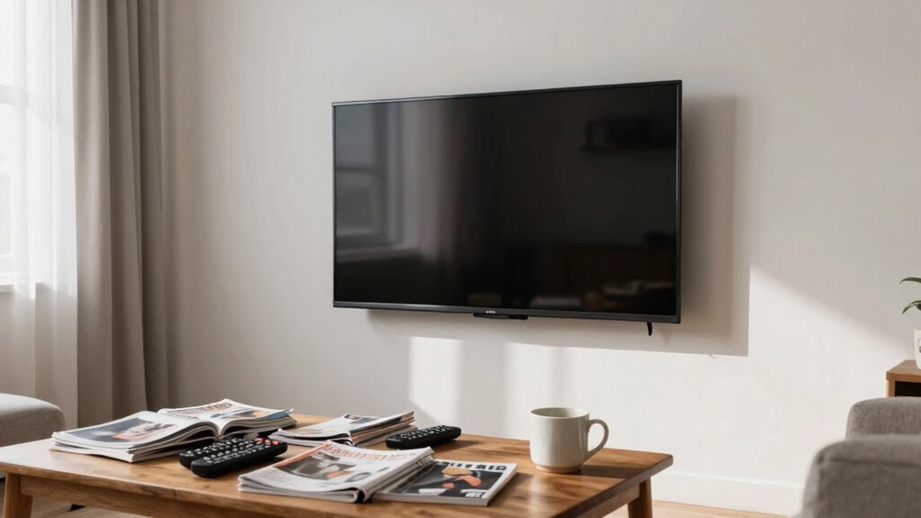 The main mistake isn’t the TV itself but how your room is arranged and colored. If furniture is pushed against walls or placed randomly, it can make the space feel cramped or disjointed. Bright or clashing colors can add chaos, while neutral tones with accents create harmony. Focusing on thoughtful furniture placement and color choices will make your space feel inviting and balanced. Keep going, and you’ll discover simple ways to turn your room into a cozy, stylish retreat.