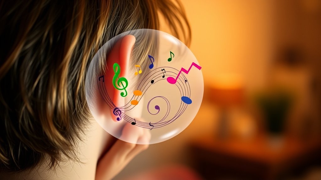 Have you ever found yourself unable to shake a song from your mind, no matter how hard you try? That’s an earworm—an involuntary, catchy tune that loops in your head. Earworms are surprisingly common, affecting nearly everyone at some point. They often pop up after listening to popular music, but cultural influences play a role too; songs tied to traditions or emotional experiences tend to stick longer. Music therapy can sometimes help manage persistent earworms by redirecting your focus or introducing new melodies. While they’re generally harmless, understanding that earworms are a normal part of how your brain processes music makes them less frustrating. Ultimately, these involuntary song snippets reveal how deeply music is woven into your cultural identity and subconscious mind. Additionally, research indicates that musical memory plays a significant role in why certain tunes become earworms.