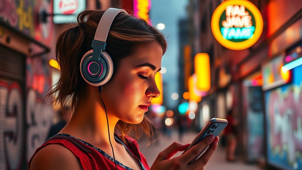 Songs about social media fame highlight both the allure and the struggles of online stardom. They often reference viral trends, fleeting popularity, and curated personas, capturing how digital fame impacts mental health and authenticity. Many tracks critique superficiality while exploring the thrill and loneliness of internet recognition. These songs reflect society’s obsession with online identities and show that behind the glamour, there’s often more chaos. If you continue exploring, you’ll discover even deeper insights into this digital phenomenon.