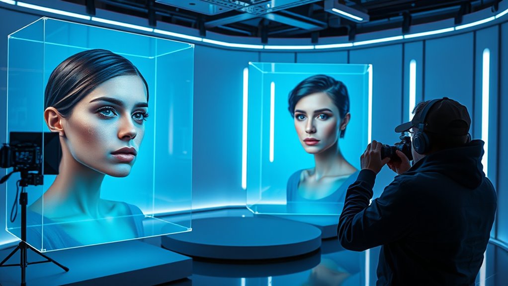 As you explore celebrity AI avatars, it’s important to contemplate ethical questions about authenticity, consent, and potential misuse. These digital replicas can be powerful tools for entertainment and marketing but also raise concerns about misrepresentation, privacy violations, and misinformation. Without clear regulations, celebrities risk losing control over their image, and audiences might struggle to distinguish real from AI-generated content. Staying informed will help you understand how society navigates these complex issues as technology advances.