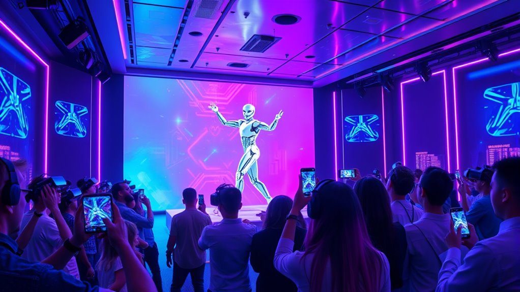 Alongside virtual actors, AI is revolutionizing how content is tailored specifically to your preferences through personalized content. Instead of browsing through endless options, AI algorithms analyze your viewing habits, search history, and even social media activity to curate content that’s uniquely suited to you. Streaming platforms leverage AI to recommend movies, shows, and videos that match your tastes, ensuring your entertainment experience feels more engaging and satisfying. This level of personalization transforms passive viewing into a more immersive experience, making you feel seen and understood by the technology. *furthermore*, AI-driven content creation tools now enable producers to generate customized stories or interactive experiences that adapt in real-time based on your reactions. For instance, choose-your-own-adventure stories or dynamic game narratives can shift direction depending on your choices, making each encounter uniquely yours. This personalization not only boosts viewer enjoyment but also helps creators build stronger emotional connections with their audiences. The use of machine learning algorithms helps predict audience preferences more accurately, leading to more relevant and compelling content.