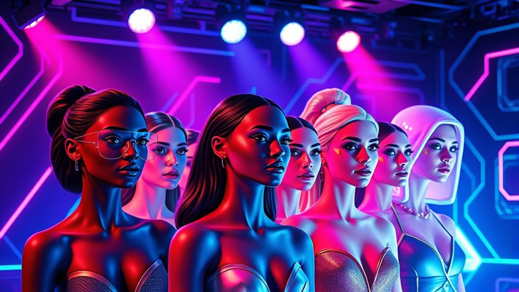 Virtual influencers are transforming entertainment by creating digital personalities that engage audiences through social media, videos, and live events. They offer innovative ways for brands and creators to connect without physical limits or scandals, making campaigns more flexible and consistent. While they open up exciting creative options, ethical concerns like transparency and authenticity remain. To discover how these virtual stars are shaping entertainment and what challenges lie ahead, keep exploring this fascinating topic.