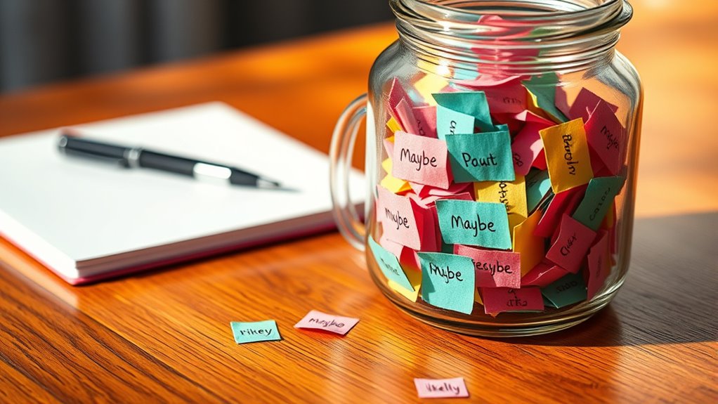 Because certainty can be elusive, we often rely on words that suggest possibility rather than guarantee. Recognizing the differences in certainty levels helps you communicate more effectively, especially when you want to avoid overcommitting. Words like “maybe” or “possibly” indicate uncertainty, letting others know your stance isn’t definite. Using these terms strategically shows honesty and openness, fostering trust. It’s important to match your language to the situation; overusing certainty can mislead, while too much ambiguity might cause confusion. Effective communication strategies involve balancing clarity with honesty about what you’re unsure of. By choosing words that reflect uncertainty, you allow room for flexibility and manage expectations, making your messages more authentic and nuanced.
