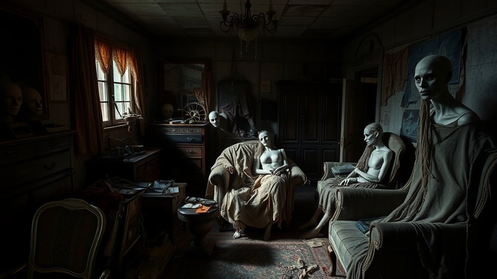 Just like a mirror reflecting shadows, shows like “Monster: The Ed Gein Story” reveal the darkest corners of human nature. They remind you that beneath the surface, everyone harbors secrets, waiting to be uncovered. These stories serve as haunting symbols of the thin line between normalcy and madness. As you watch, remember: sometimes, the most unsettling truths lie hidden behind a facade, waiting to be exposed like a mirror cracking under pressure.