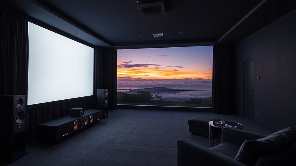 Ambient light can reduce a projector’s contrast by up to 50%, markedly affecting image quality. I’ve found that in bright rooms, even high-lumen projectors struggle to deliver vibrant colors and deep blacks. To get the best performance, I recommend controlling ambient light with curtains or blinds and using a projector with high lumens. This way, your images stay sharp, bright, and true to life, no matter the lighting conditions.