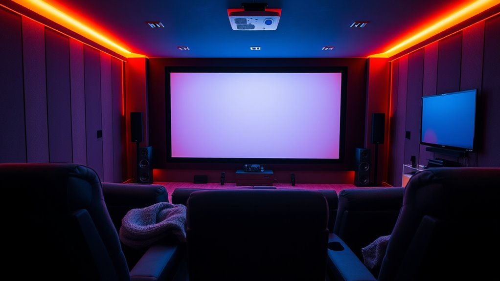 When choosing a 4K projector for your home theater, considering the overall price is vital, including potential costs for accessories or future upgrades. Don’t forget to check if the manufacturer offers a thorough warranty, typically ranging from 1 to 3 years, to protect against defects and repairs. Review the warranty details carefully—see what’s covered, such as parts, labor, or accidental damage. Longer warranties can provide extra peace of mind, especially for high-end models with advanced features. Balancing the initial cost with warranty benefits ensures you get good value and reliable after-sales support. Investing in a projector with a solid warranty can save you money and hassle down the line, making your home theater experience more enjoyable and worry-free.
