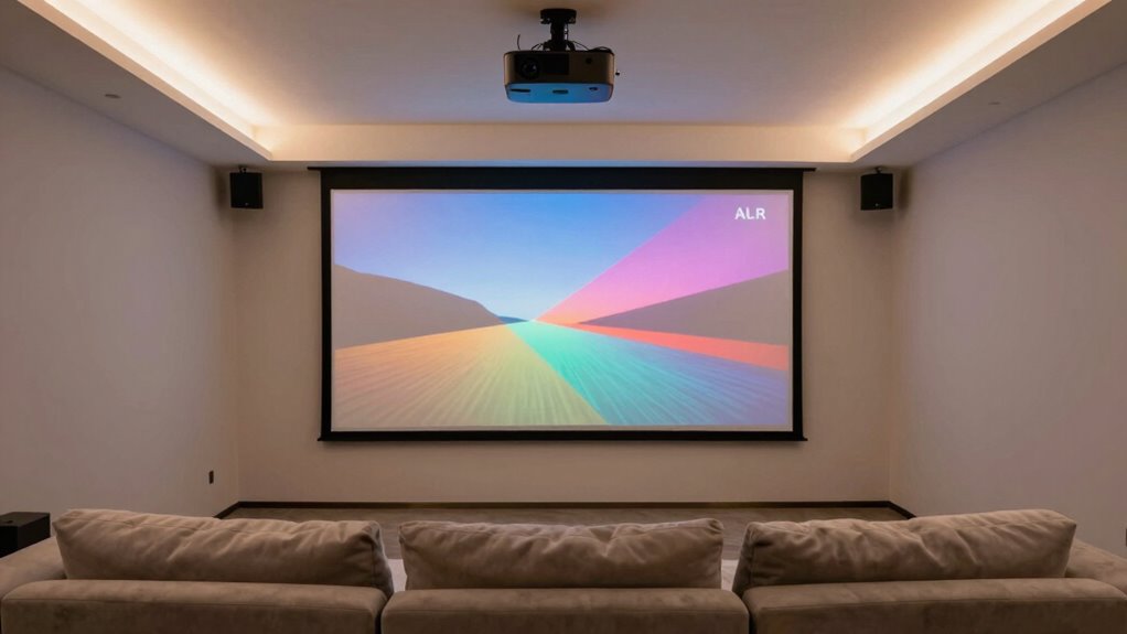 If you’re looking for the 14 best ALR projector screens for UST in 2026, I’ve found some excellent options. These include fixed frame, motorized, and portable screens designed specifically for ultra-short throw projectors, with advanced light rejection, wide viewing angles, and durable materials. They support high resolutions and are perfect for bright rooms. Keep exploring as I’ll share more insights to help you choose the ideal screen for your setup.