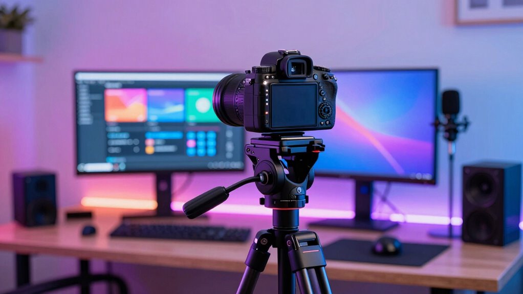 Choosing a capture device that’s compatible with your DSLR is vital for a smooth streaming experience. You need to verify it supports your camera’s output resolution and frame rate to avoid quality issues. Check if the device works with your DSLR’s HDMI or SDI output, and be prepared to use adapters if necessary. It’s also important to confirm that the capture device supports your camera’s HDMI version and color format, such as YCbCr or YUY2, for seamless connection. Compatibility with your computer’s operating system—Windows, Mac, or Linux—is key to prevent connection problems. Finally, if you plan to include live commentary, confirm that the device supports external microphone or audio input. These considerations ensure your setup runs smoothly without technical hiccups.