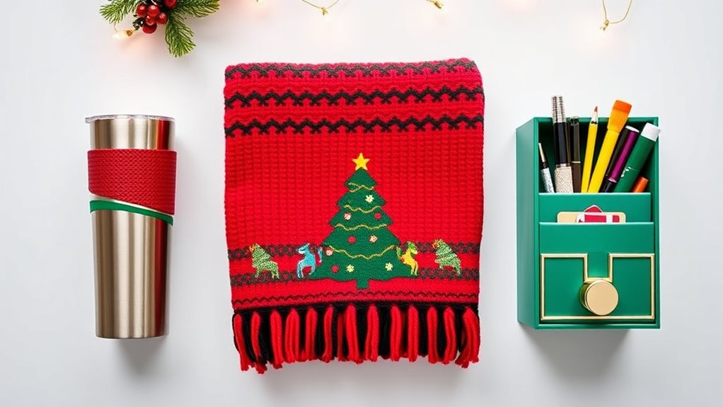 Personalization options can turn a simple gift into a memorable keepsake, especially when working with a budget under $25. Adding names, initials, or custom messages makes the gift feel unique and thoughtful. You can opt for engraved or printed designs that reflect your coworker’s personality or hobbies, making the present more meaningful. Monogramming or handwritten notes add a personal touch that shows you’ve put thought into the gift. Tailoring the packaging or choosing elements that match their interests ensures it resonates with them. Fortunately, many customizable options are available within this price range, allowing you to give something special without overspending. Personalization elevates a modest gift into a cherished token of appreciation that your coworker will remember long after the holidays.