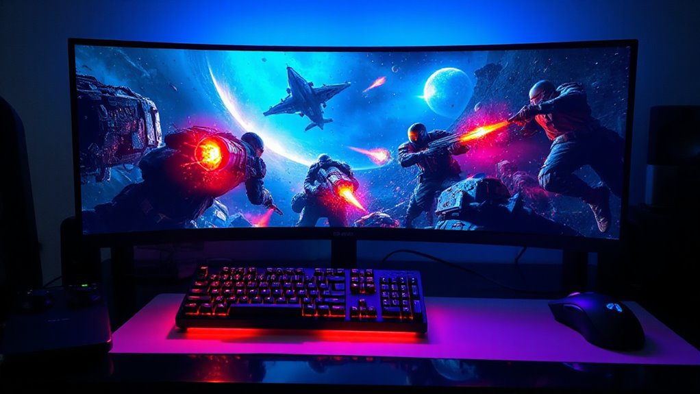 Response time plays a critical role in ensuring that fast-moving visuals remain sharp and clear during gameplay. It measures how quickly a monitor updates its pixels, directly impacting motion clarity. A lower response time, like 1ms or 2ms, helps reduce motion blur, ghosting, and trailing artifacts, making fast action smoother. This is especially important in competitive gaming, where split-second reactions can decide the outcome. When paired with high refresh rates such as 144Hz, response time guarantees visuals stay crisp and responsive. Monitoring response times allows gamers to choose displays that minimize input lag and enhance overall responsiveness. Ultimately, a fast response time ensures your gameplay remains fluid and precise, giving you an edge in both casual and competitive scenarios.