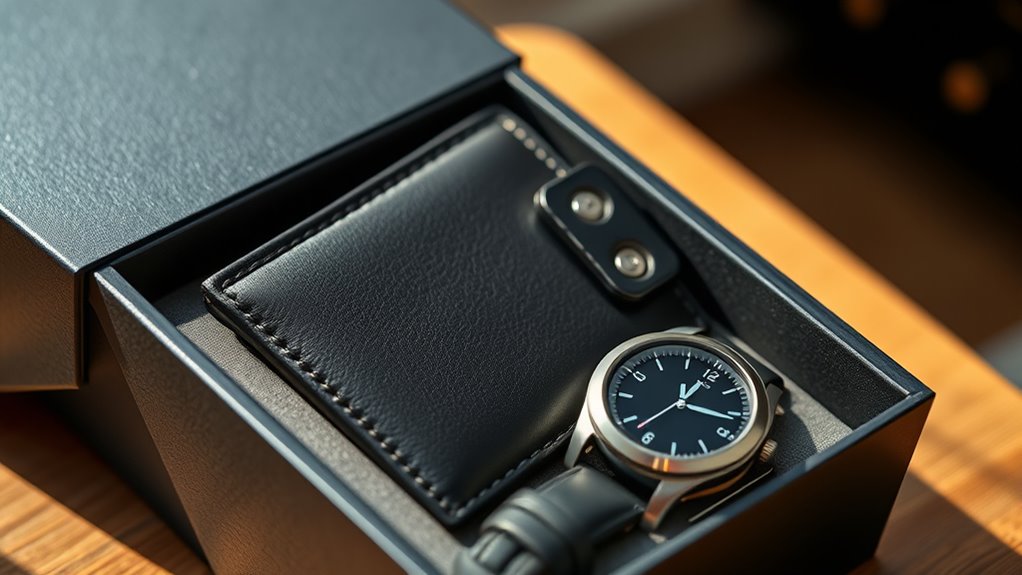 Prioritizing quality and durability guarantees that your gift for your boyfriend will stand the test of time. I always look for items made from sturdy materials like stainless steel, hardwood, or premium ceramics, which guarantee longevity. Checking for reinforced stitching, strong construction, or corrosion resistance helps guarantee the gift can handle everyday wear and tear. Durable gifts often have reinforced parts, such as thick glass or heavy-duty fabric, to prevent damage over time. High-quality components and high-grade materials usually resist fading, peeling, or breaking, keeping their appearance and function intact. Investing in quality means your gift remains both functional and attractive long-term, providing lasting value and satisfaction for your boyfriend. It’s a simple way to show you care about his happiness and the gift’s longevity.