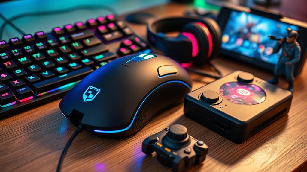 How do you determine the right budget when choosing a gaming gift? First, set a clear range based on your relationship and what you’re comfortable spending—$10 to $50 works well for casual gifts, while premium items can go up to $100 or more. Next, think about the recipient’s gaming habits and preferences to prioritize what fits your budget, whether it’s accessories or collectibles. Keep in mind that personalized or limited-edition items tend to cost more, so plan accordingly if you want something unique. Use price comparison tools to find the best value, balancing quality and affordability. Remember, even small, thoughtful gifts within your budget can make a big impact, often more than expensive but impersonal presents.