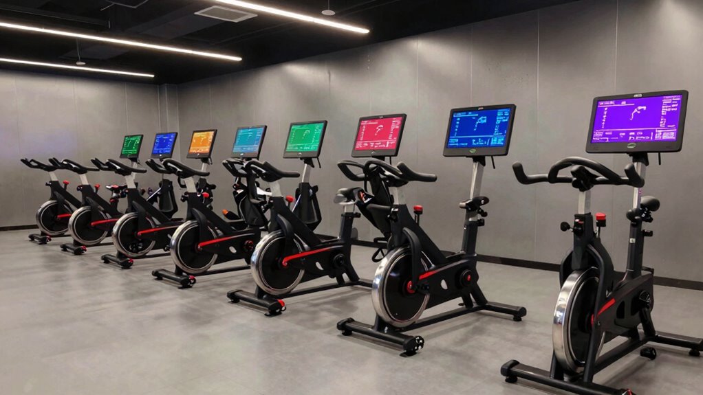 If you’re searching for the 10 best indoor cycling bikes with monitors for 2026, I’ve got you covered. I’ve looked at models that combine durability, comfort, and tech features like app compatibility, real-time tracking, and immersive virtual experiences. Many offer adjustable resistance, solid build quality, and user-friendly displays so you can stay motivated. Keep going, and you’ll discover all the details that can help you pick the perfect bike for your home workouts.