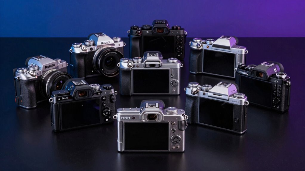 If you’re looking for the 9 best mirrorless cameras for low light in 2026, I recommend models like the Canon EOS R8, EOS R6 Mark II, and Nikon Z 5. These cameras feature large sensors, advanced autofocus, and stellar image stabilization, making them perfect for dark environments. Plus, paired with wide-aperture lenses and quality lighting accessories, they’ll help you capture sharp, clear shots. Keep going, and you’ll discover all the key details to choose the best gear for your needs.
