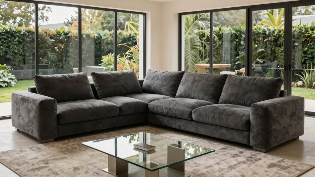 When it comes to ensuring your modular sectional sofa stands the test of time, durability begins with the materials used in its construction. High-resilience foam, pocket springs, and reinforced wooden frames are essential for extending the sofa’s lifespan. Fabrics like chenille, corduroy, and velvet resist wear, pilling, and pet-related damage, helping the sofa stay looking fresh longer. The quality of construction, including no-sag steel springs and sturdy frames, directly impacts its ability to maintain shape over time. Removable, washable cushion covers make regular cleaning easier, preserving fabric integrity. Additionally, choosing environmentally friendly, recyclable materials can boost long-term durability while ensuring safety. Investing in quality materials means your sofa will remain functional and attractive for years to come.