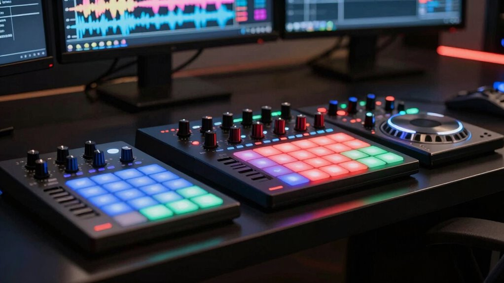 If you’re looking for the 15 best music production controller surfaces in 2026, I’ve found top options like the Novation Launch Control XL 3, PreSonus FaderPort series, Mackie MCU Pro, Akai MIDImix, and more. These controllers offer a great mix of controls, feedback, and compatibility across DAWs. From portable mixers to advanced control surfaces, there’s something for every setup. Keep going, and I’ll show you what to take into account to choose the perfect one for your needs.
