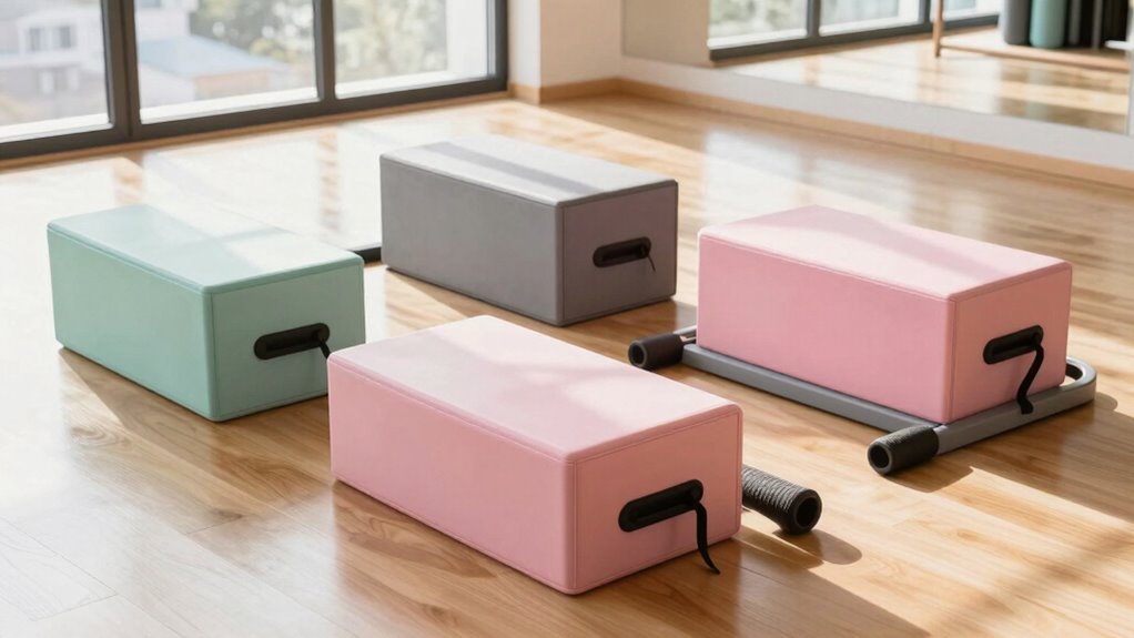 A versatile reformer box and jumpboard set opens up a wide array of exercise options that target different muscle groups, from arms and legs to core. With adjustable features, you can customize workout intensity and variety, making it suitable for all fitness levels. Compatibility with various reformer models ensures you can incorporate the set into multiple routines, whether for Pilates, strength, or functional training. Incorporating both a reformer box and jumpboard broadens your exercise repertoire to include aerobic, strength, and flexibility movements. High-quality, durable materials guarantee consistent performance and safety, even with frequent use. This versatility allows you to tailor workouts precisely to your goals, making the set a valuable addition to any fitness regimen.