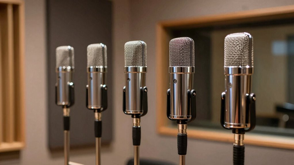 When selecting a ribbon microphone, sound quality is paramount, and several key factors influence this aspect. I look for a warm, natural tone that captures the richness of midrange frequencies, which ribbon mics excel at delivering. A broad frequency response—from about 20 Hz to 20 kHz—ensures I record a full spectrum of sound. High-quality models handle loud sources without distortion, thanks to their ability to withstand high SPLs. The signal-to-noise ratio is vital; low residual noise results in clearer recordings. Finally, the polar pattern, like figure-8, affects how sound is captured from different directions, impacting versatility. Overall, these factors combine to determine how well a ribbon microphone reproduces sound, making them essential considerations for quality recordings.