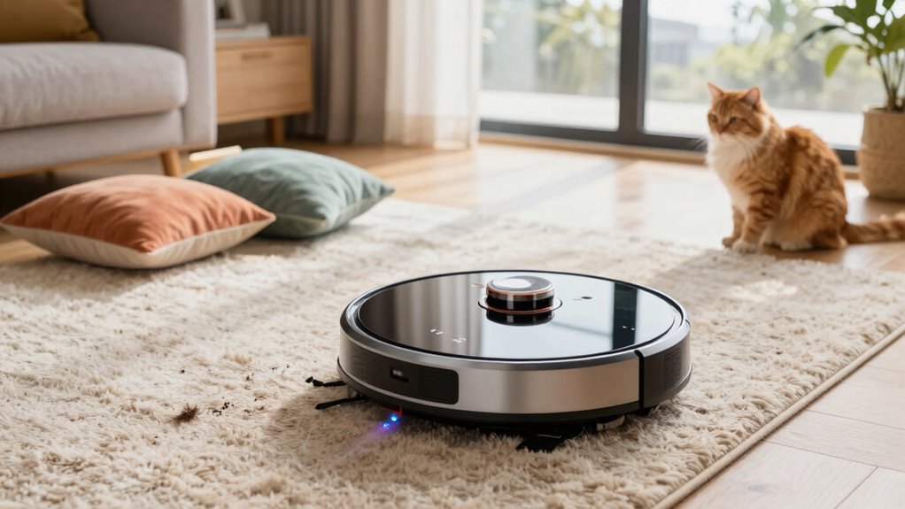 Yes, many advanced robot vacuums can differentiate between pet hair and other debris, thanks to smart sensors and AI technology. I’ve noticed that these vacuums target pet hair more effectively, avoiding unnecessary cleaning of non-debris items. This means I don’t have to worry about them wasting time or energy on things like paper or dust, making my cleaning more efficient and ensuring pet hair gets the attention it needs.