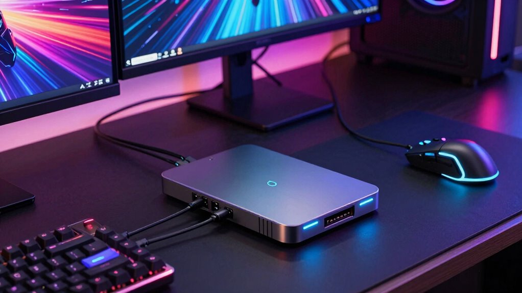 Thunderbolt docks can improve gaming performance by providing faster data transfer and more reliable connections, which reduces lag and latency. I’ve noticed that with a good dock, my peripherals and external displays work seamlessly, and my games run smoother. However, if the dock isn’t well-designed or properly powered, it might introduce slight delays. Overall, a quality Thunderbolt dock enhances my gaming experience by offering faster, more stable connections.